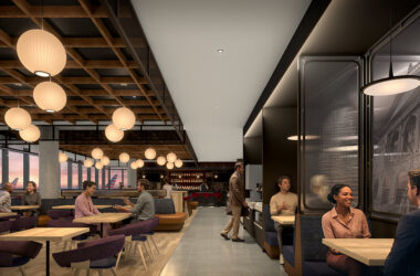 Although it's one of the smaller Flagship Lounges, the high ceilings and large windows make up for it and…
