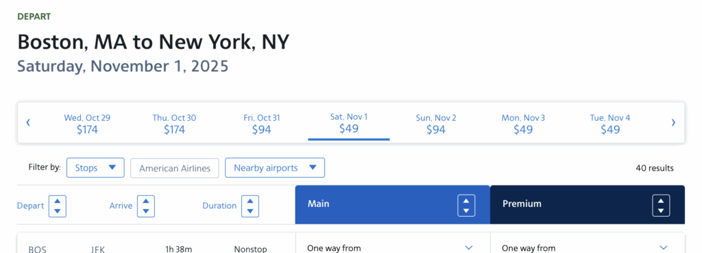 Having more cheap selections for flights really expands my options for traveling between the two cities, and helps me maximize my time in each city. At the end of the day, the less time I’m spending traveling between New York and Boston, the better, since it’s not for vacation.