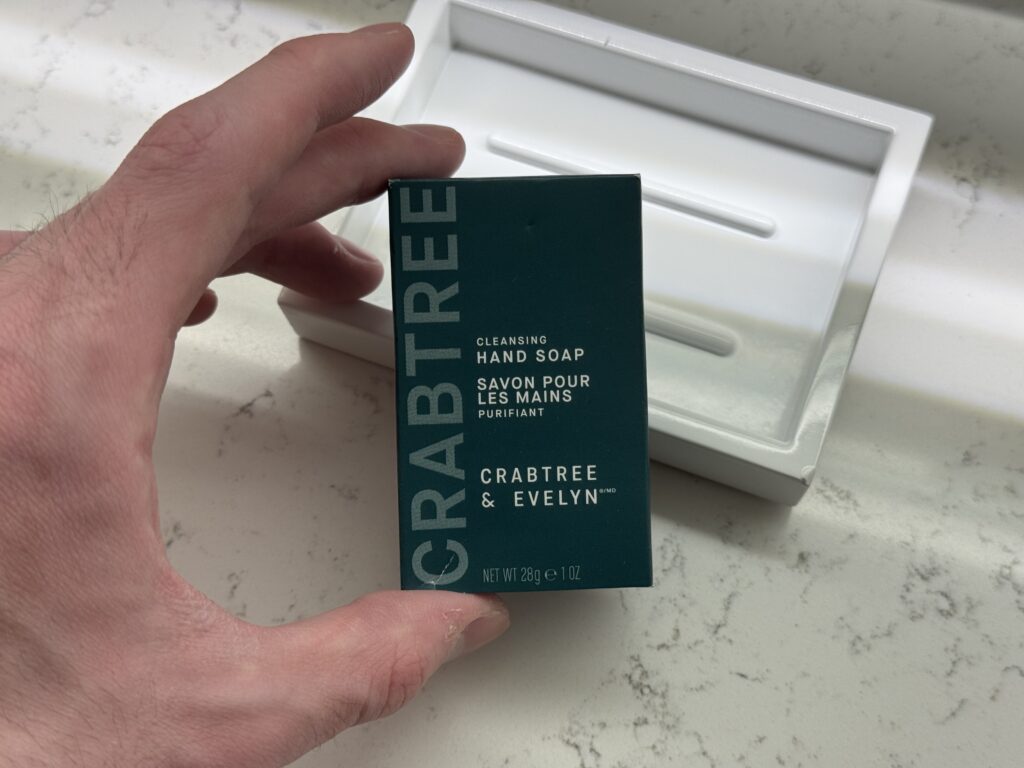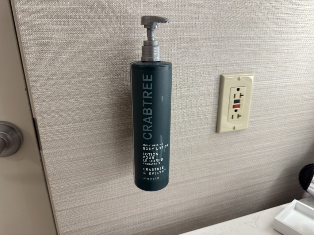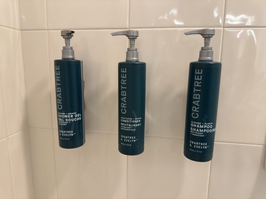 Shower gel, shampoo, and conditioner were by Crabtree & Evelyn: