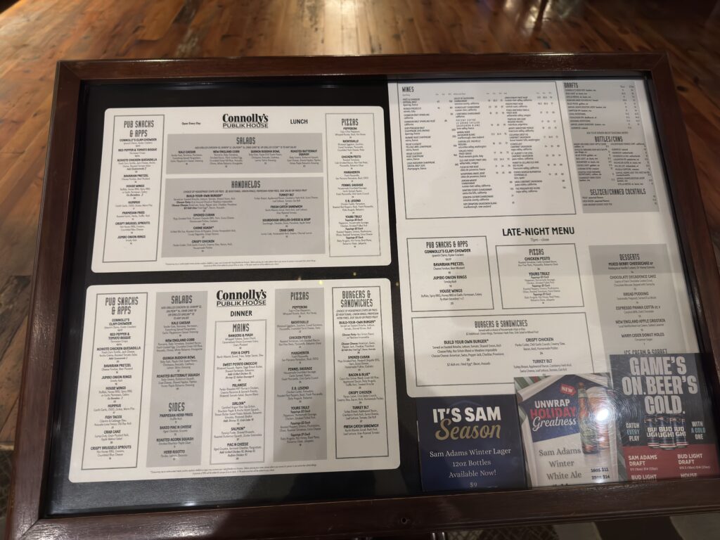 Connolly’s Publik House was the on-site restaurant, open until late at night. I didn’t eat here, but I did get a photo of the menu: