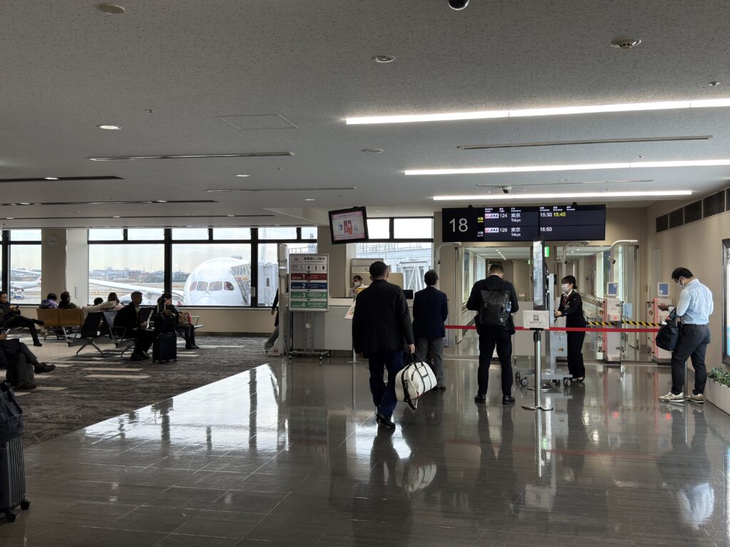 Boarding and departure were delayed by 10 minutes. Group 1 passengers began lining up quite early, which is a common sight in Japan.