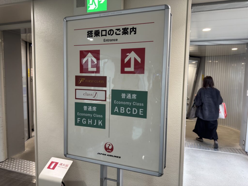 JAL does whatever it can to speed up boarding and reduce its dwell times on the ground. Economy class passengers seated in F, G, H, J, and K boarded on the same jetbridge as First and Class J.