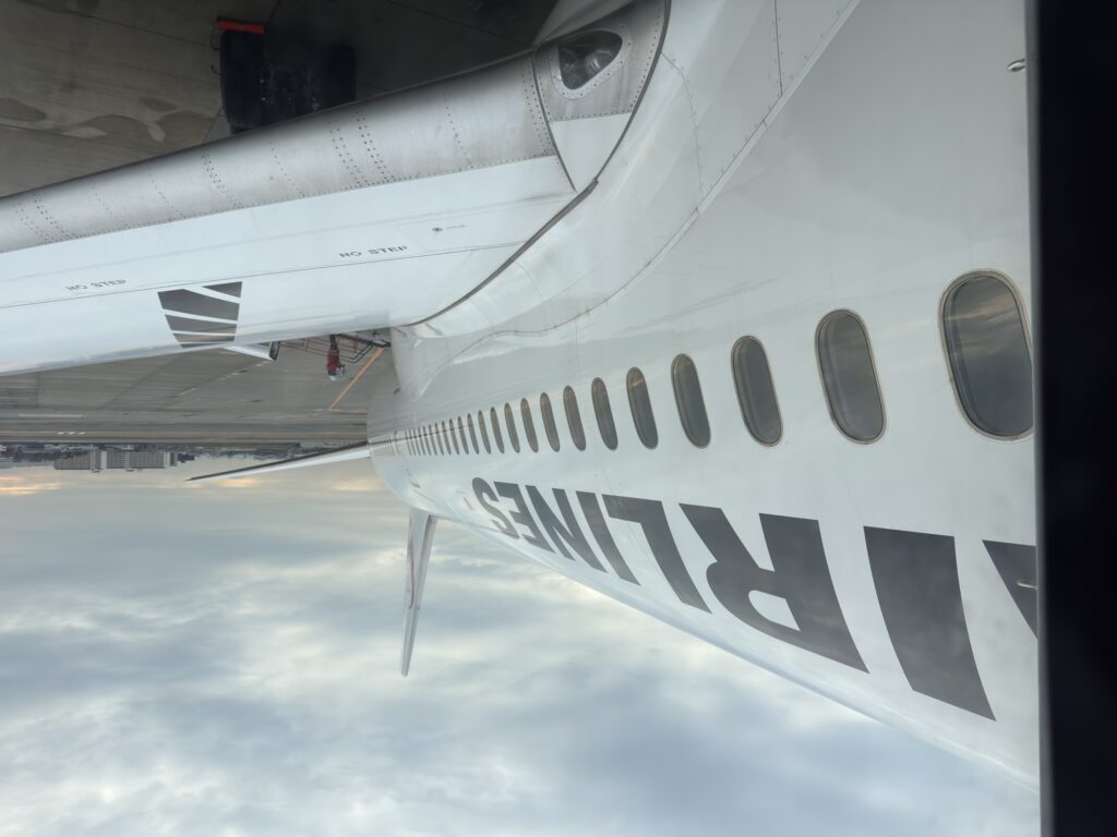 The total flight time this day was 47 minutes. We pushed back and took off slightly behind schedule.