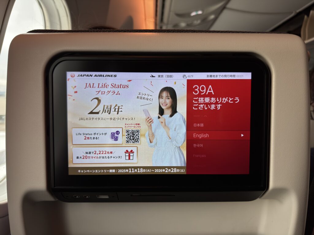Wi-Fi was also available for free, but the speeds weren’t stellar. JAL uses Panasonic’s Wi-Fi system for most of its aircraft, and that was the case on this aircraft.