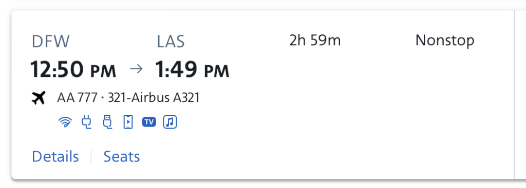 A common one you’ll see is the flight number 777 for Las Vegas, obviously a lucky 7s reference to its destination. The one above is an American Airlines flight AA777 from its largest hub at DFW.