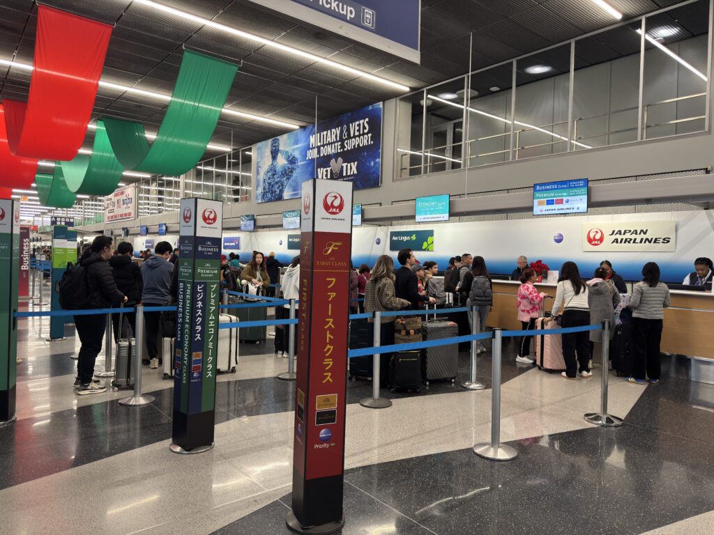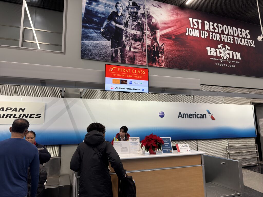 The Japan Airlines counter is located all the way at the end of the building. Economy class had a fairly long line, but First (Oneworld Emerald) had no line.