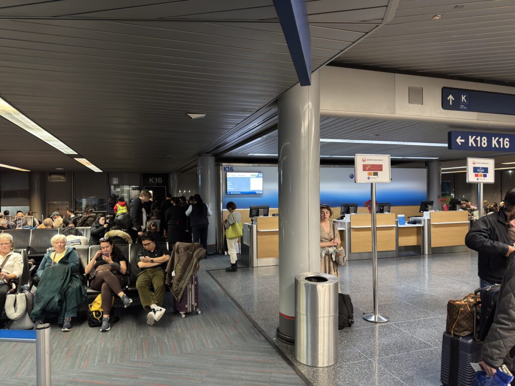 I headed straight to the check-in desk, where I had to drop off a bag. I was unusually flying with a checked bag on this trip, and was reminded how much of a pain it was to do so.