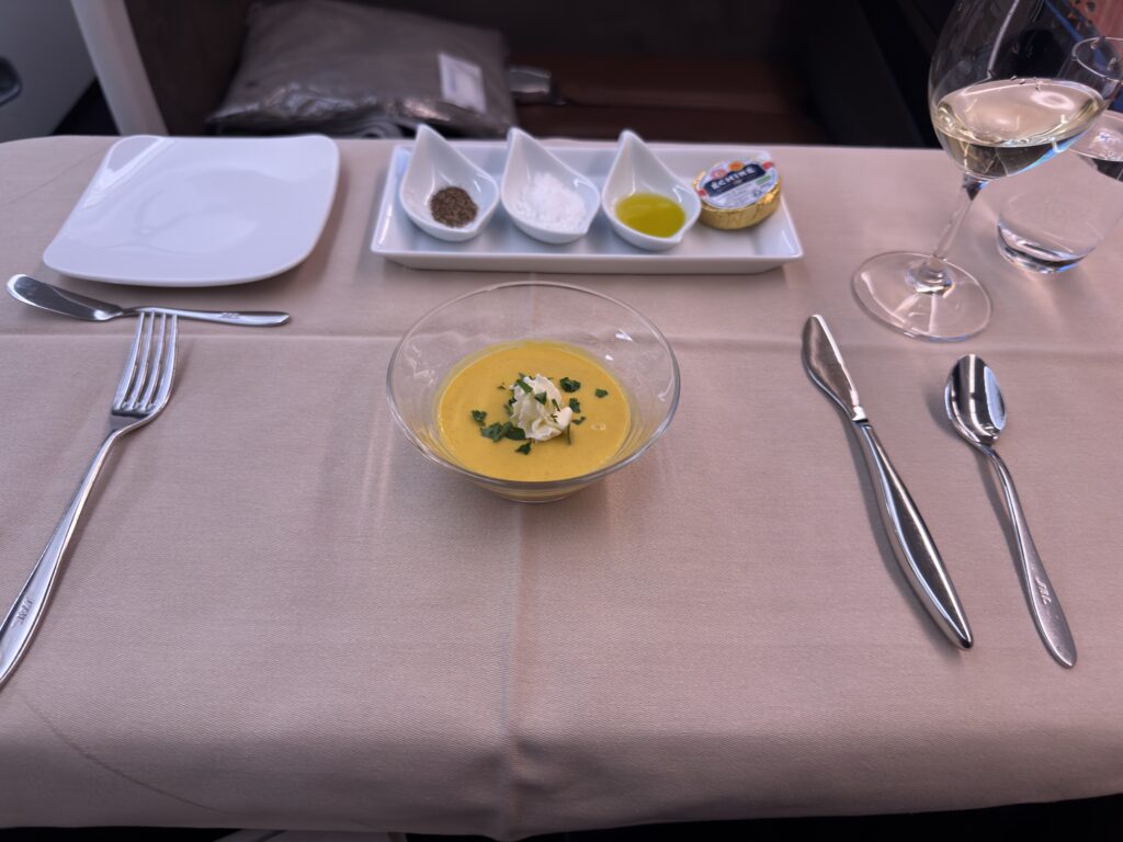 I was then served the first part of the meal, an apple/coconut soup with chilled butternut squash.
