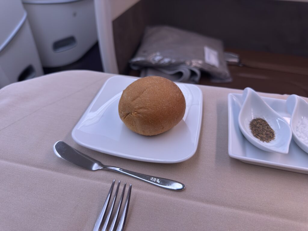 The lead flight attendant also came with a basket full of bread, and I selected my choice.
