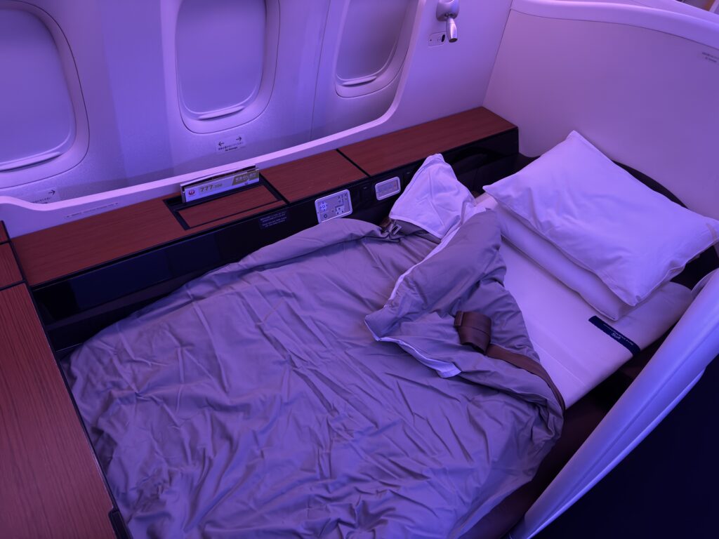 Since seat 1K in front of me was open, the flight attendants made my bed there. There were a total of 3 passengers in First on this flight, seat 1A, 2A, and 2K (me).