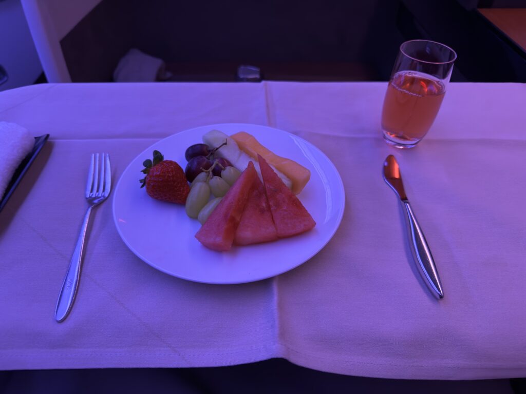 The lead flight attendant, the chief purser, was in charge of conducting my meal service. She first came to me asking for my choice of drink.