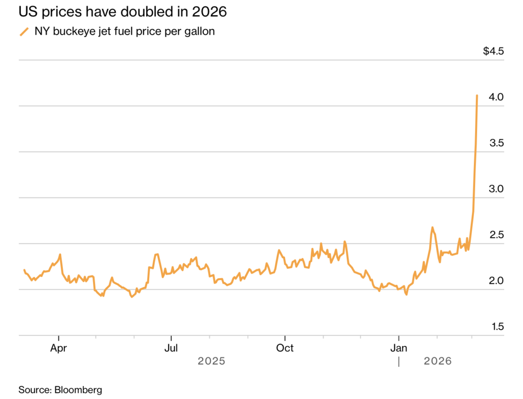 Jet fuel prices have nearly doubled since the start of 2026. Since many air tickets are typically purchased weeks or months in advance, this sudden increase forces airlines to absorb the cost in the short term.